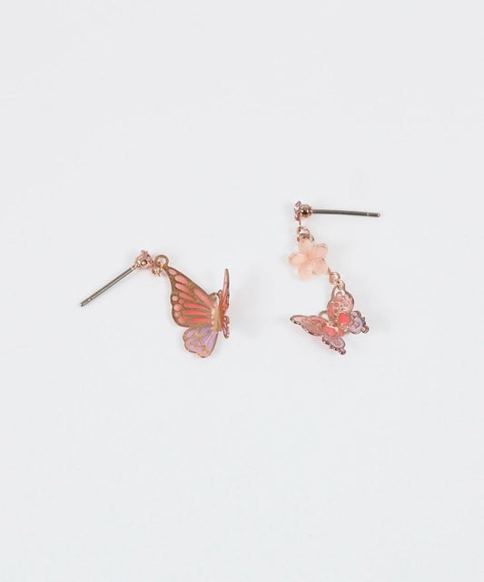 Asymmetrical Butterfly Titanium Post Earrings - Pink