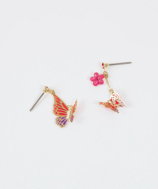 Asymmetrical Butterfly Titanium Post Earrings - Pink